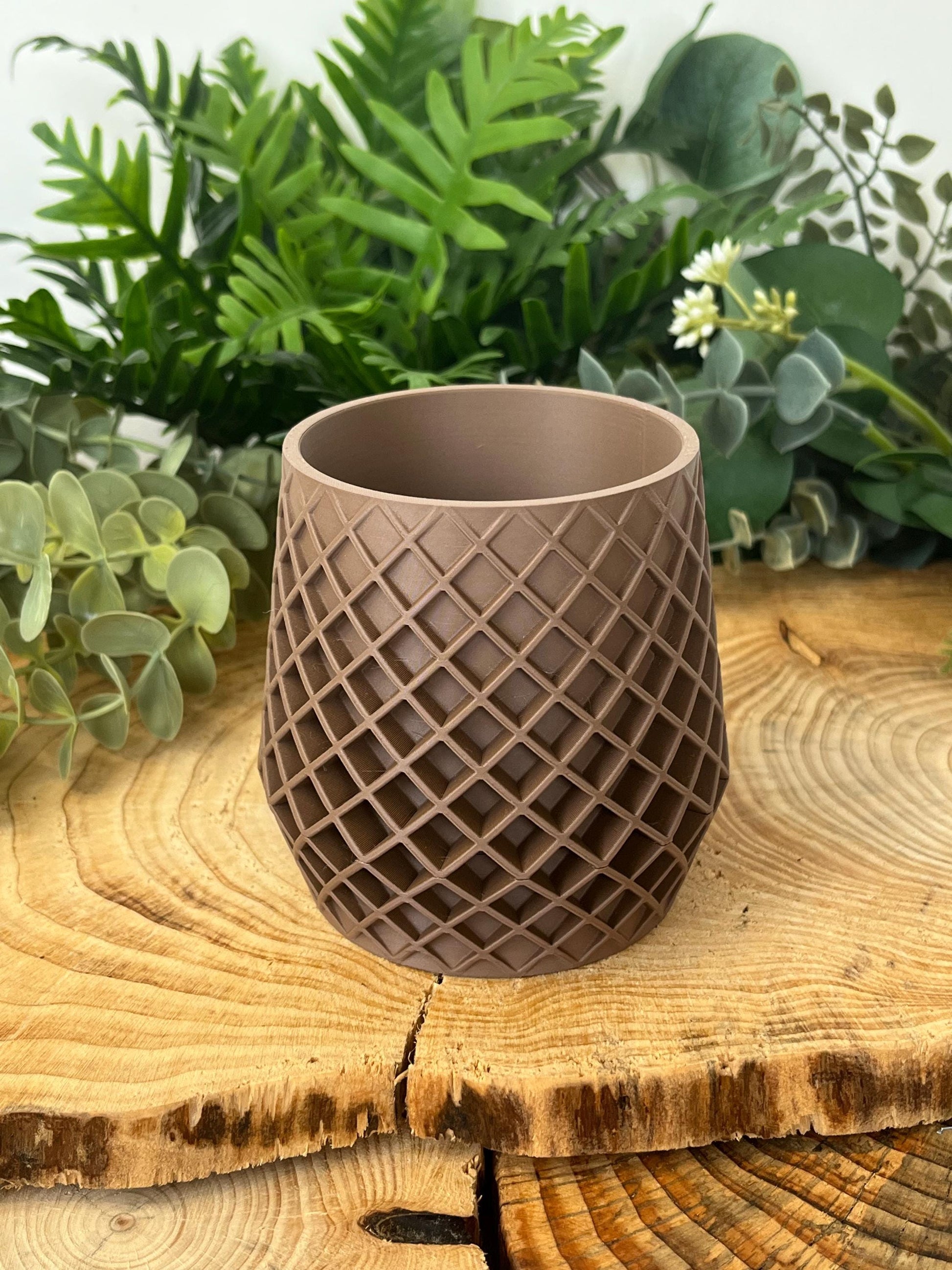 The Lattice planter pictured is printed in Dark Brown.
